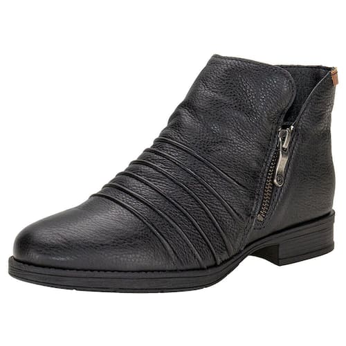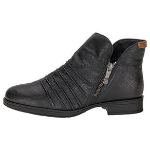 Pise na elegância com a Bota Feminina Cano Baixo Bottero. Confeccionada em Couro, forrado em têxtil, com fechamento em zíper na lateral. O cano baixo de onze centímetros por trinta centímetros de circunferência, palmilha em PU muito macia e o solado em borracha com salto de três centímetros.