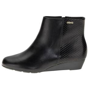 A Bota Feminina Cano Baixo Modare é confeccionada em Napa e Napa Snake, acabamento em costura, forrado em têxtil e fechamento por zíper na lateral. A palmilha é Ultracomfy e o solado em borracha. O cano da bota mede doze centímetros por trinta e três de circunferência aproximadamente.