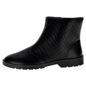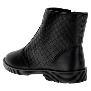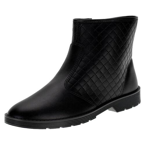 A Bota Feminina Cano Baixo Moleca é confeccionada em Napa Estonia de alta qualidade com acabamento em costura e contém fechamento por zíper lateral, palmilha em PU e solado em borracha antiderrapante com salto de dois centímetros. Esse modelo possui cano de doze centímetros de altura por trinta e dois centímetros de circunferência.