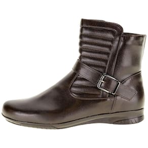 A Bota Feminina Cano Baixo Mooncity é confeccionada em Napa com acabamento em costura, zíper lateral, forro interno em têxtil, palmilha em espuma e solado em borracha antiderrapante. O cano mede catorze centímetros por trinta e dois de circunferência.