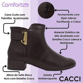 Ideal para quem busca praticidade e elegância no dia a dia, esta bota feminina da Comfortflex une conforto e charme em um design versátil. O cano curto conta com palmilha acolchoada que proporciona uma experiência de uso mais suave e agradável, enquanto o fechamento ecler interno facilita o calce e garante maior praticidade na rotina. Produzida em material sintético de alta qualidade, apresenta detalhe croco lateral com acabamento metalizado que adiciona um toque moderno e sofisticado ao visual.