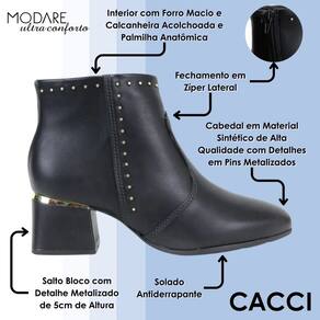 O cabedal em material sintético de alta qualidade oferece toque macio e resistência, enquanto o forro têxtil proporciona respirabilidade ao longo do uso. A palmilha em espuma super macia garante bem-estar prolongado, e o salto bloco de 5 cm é perfeito para quem deseja ganhar altura com estabilidade e leveza. O fechamento ecler lateral torna o calce rápido e prático, ideal para a correria do dia a dia.