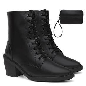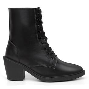Bota Feminina Cano Curto Cadarço Bolsa Carteira Moderna - 39 - Preto