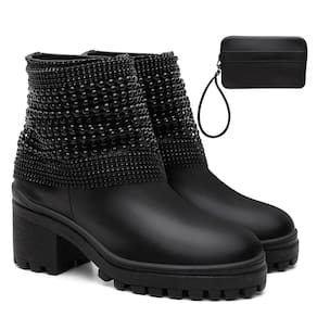 Bota Feminina Cano Curto Casual Zíper + Bolsa Carteira Kit - 39 - Preto