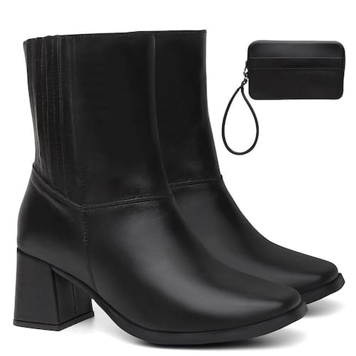 Modelo fashionista, esta bota da Valentina K + Carteira foi confeccionada para garantir durabilidade e proteção. O modelo confeccionado em couro e com material interno em tecido, permite maior conforto para produções do dia a dia. Com salto baixo, cano curto e fecho em zíper, inspira ousadia e atitude. Aposte na peça com calça jeans e camisa. Este modelo é pra quem busca conforto e estilo ao mesmo tempo! Bolsa confeccionada em PVC.