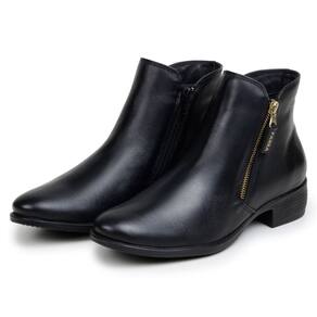 Bota Feminina Cano Curto Couro Zíper Lateral Reforçado Bota Coturno Casual Dia a Dia - 40 - Preto