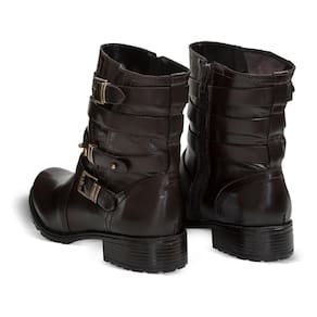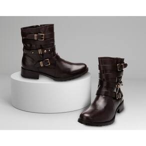 Bota Feminina Cano Curto Salto Baixo Couro Confortável - 37 - Marrom