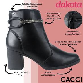 A Bota Dakota de Cano Curto é uma escolha elegante e atemporal para quem busca um calçado versátil que se adapta tanto ao dia a dia quanto a momentos mais especiais. Com um design minimalista, ela conquista pelo visual moderno e sofisticado, destacando-se pela tira com brilhos no cano, que acrescenta um toque de charme e luminosidade ao look. O salto bloco alto de 7 cm assegura conforto e estabilidade ao caminhar, enquanto o cano curto, com 14 cm de altura e 22 cm de circunferência, oferece praticidade e liberdade de movimento. Produzida em material sintético de alta qualidade, a bota entrega resistência e durabilidade, além de ser leve, pesando apenas 0,806 kg, o que garante conforto mesmo em uso prolongado. Perfeita para mulheres que valorizam estilo sem abrir mão da funcionalidade, ela combina facilmente com jeans, saias, vestidos e também se harmoniza com peças mais refinadas, como vestidos de festa e calças de alfaiataria, elevando qualquer produção com um toque de elegância discreta.