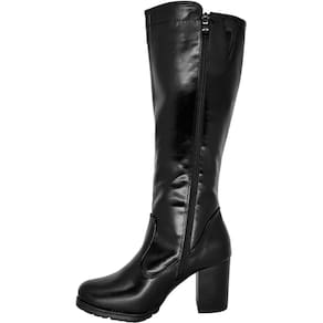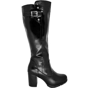 Bota Feminina Cano Longo Maleável com Fivela Zíper Lateral Salto Alto Mooncity 73136 - 37 - Preto