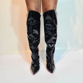 Bota Feminina Dom&Amazona Numeração Especial Grande Verniz PretaRef: BelaBota feminina poderosa e estilosa, cheia de personalidade com seu salto fino geométrico e sua boca do cano em corte alongado. Possui a linda sola vermelha que encanta.As medidas da bota são:Salto com aprox 12cmCano com altura na parte de trás de aprox 34 cm e na parte frontal aprox 40cmPossui ziper na lateral interna para um calce fácilBota cano longo verniz preto para mulheres altas com pés grandes da marca Dom&Amazona.