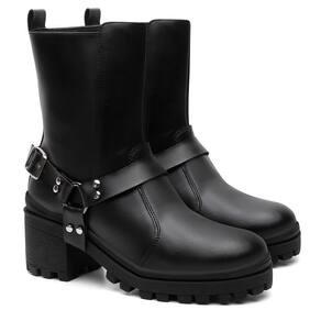 Modelo fashionista, esta bota é a aposta perfeita em um visual versátil. O cano médio com detalhe de cabreço no cabedal, é a pedida certa para quem quer ousar no dia a dia. O salto tratorado em micro expandido e o fechamento em zíper, são sinônimos de praticidade e comodidade. É ideal para compor looks modernos e atemporais, combine com calça skinny, shorts jeans e jaqueta, ou ainda com vestidos mais soltinhos.