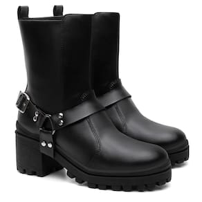 Bota Feminina Cano Médio Cabresto Tratorada Bico Redondo - 36 - Preto