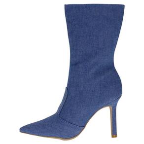 A Bota Feminina Cano Médio Jeans Yes Shoes confeccionada em jeans de alta qualidade, com forro interno em têxtil e fechamento por zíper na lateral. A palmilha em PU acomoda os pés e o solado em borracha com salto fino de dez centímetros oferece segurança em cada passo. Marca: YES SHOES