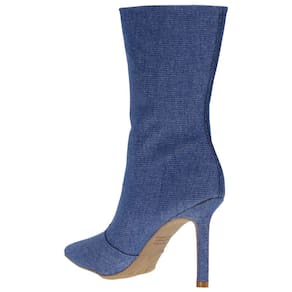 A Bota Feminina Cano Médio Jeans Yes Shoes confeccionada em jeans de alta qualidade, com forro interno em têxtil e fechamento por zíper na lateral. A palmilha em PU acomoda os pés e o solado em borracha com salto fino de dez centímetros oferece segurança em cada passo. Marca: YES SHOES