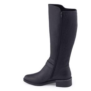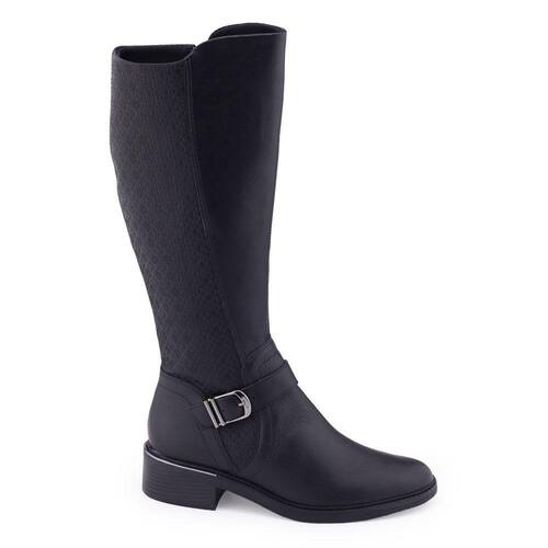 Bota cano longo Comfortflex 23-69334 é um lindo modelo que combina com tudo. Apresenta cano longo com aproximadamente 30cm de altura em material sintético liso e testurizado, seu fechamento é por ziper interno e tem como detalhe fivela lateral externa. Sua palmilha interna é fixa, macia e revestida. A bota traz um bom encaixe ao pé e facilidade em calçar, seu bico é arredondado e o salto baixo é fachetado e possui 3,5cm de altura, tem como detalhe uma pequena faixa metalizada entre o início do salto e o calcanhar. Seu solado possui frisos para maior segurança.