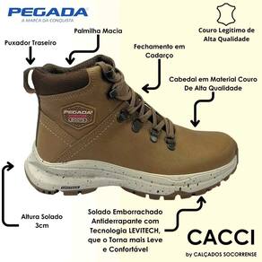 Elas são fabricadas em couro, matéria prima de alta qualidade, que oferece maciez, resistência e durabilidade. O forro em tecido espumado garante o conforto e a absorção de suor, características necessárias para manter o pé seco e arejado. A palmilha é super macia e se adapta aos contornos dos pés. São perfeitas para fazer trilhas e outras aventuras com muito estilo e conforto.
