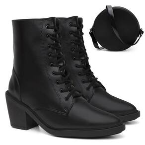 Bota Feminina Coturno Cano Baixo + Bolsa Roma Moderna - 38 - Preto
