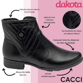 A Bota Dakota de Cano Curto é uma peça indispensável no guarda-roupa da mulher contemporânea que busca aliar conforto absoluto, elegância discreta e versatilidade em um só calçado. Desenvolvida em material sintético de alta qualidade, com sola em TR que proporciona leveza e excelente aderência, ela entrega uma experiência de uso extremamente agradável em qualquer ocasião. Seu cano curto, com 15 cm de altura e 19 cm de circunferência, se ajusta com naturalidade ao formato da perna, enquanto o salto de 2,8 cm, cuidadosamente desenhado para oferecer equilíbrio e estabilidade, garante um caminhar seguro e confortável ao longo do dia. Pesando apenas 0,716 kg, essa bota é leve como um convite para explorar a cidade sem abrir mão do estilo. O design minimalista ganha vida através de costuras sutis e do delicado pin metalizado da marca, detalhes que traduzem um toque de sofisticação sem excessos. Ideal para transitar entre diferentes momentos da rotina, essa bota se revela extremamente versátil, combinando com produções que vão do casual despojado ao elegante contemporâneo, seja com jeans, saias fluídas, vestidos ou shorts de alfaiataria. Um calçado que valoriza a autenticidade da mulher moderna e acompanha com charme cada passo da sua história.