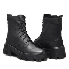 Bota Feminina Coturno Couro Confortável Versátil Com Zíper - 40 - Preto