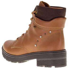 A Bota Feminina Coturno Dakota é confeccionada em Napa de alta qualidade com acabamento em costura, forro interno em têxtil, palmilha em PU e solado em borracha com salto grosso de cinco centímetros. Cano com doze centímetros de altura por trinta e um centímetros de circunferência.