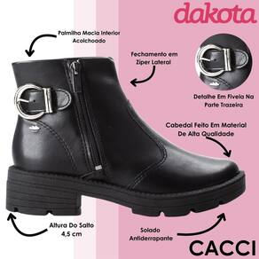 Com fechamento prático, ela facilita o calce e proporciona ajuste seguro, adaptando-se facilmente ao seu estilo de vida. Seja para uma rotina agitada ou momentos de lazer, a Bota Dakota é uma aliada que combina perfeitamente com jeans, vestidos ou até looks mais elaborados, tornando-se uma peça-chave no guarda-roupa de mulheres que apreciam a praticidade sem abrir mão do estilo.