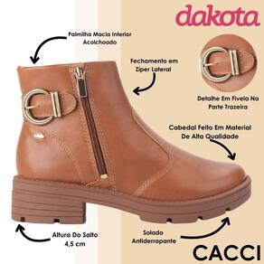 Com fechamento prático, ela facilita o calce e proporciona ajuste seguro, adaptando-se facilmente ao seu estilo de vida. Seja para uma rotina agitada ou momentos de lazer, a Bota Dakota é uma aliada que combina perfeitamente com jeans, vestidos ou até looks mais elaborados, tornando-se uma peça-chave no guarda-roupa de mulheres que apreciam a praticidade sem abrir mão do estilo.