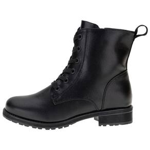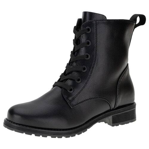 A Bota Feminina Coturno Mooncity é confeccionada em Napa com acabamento em costura, fechamento por cadarço de amarração, forro interno em têxtil, palmilha em PU e solado em borracha tratorada. O cano mede quinze centímetros por trinta e um de circunferência.