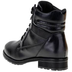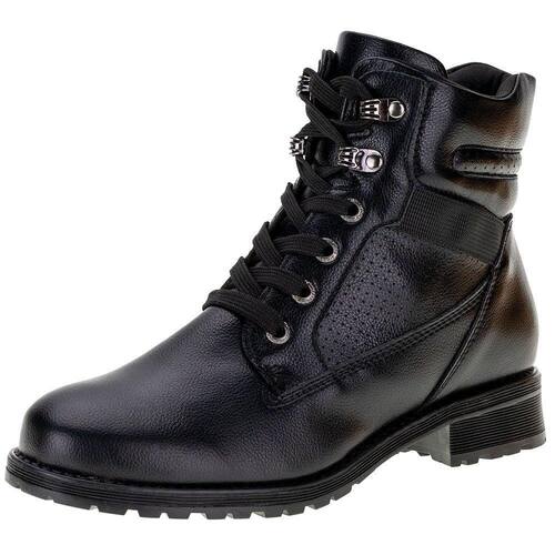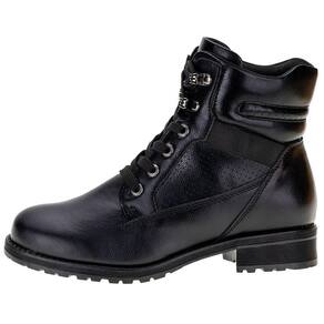 A Bota Feminina Coturno Mooncity é confeccionada em Napa com acabamento em costura, fechamento por cadarço de amarração, forro interno em têxtil, palmilha em PU e solado em borracha tratorada. O cano mede quinze centímetros por vinte nove de circunferência.