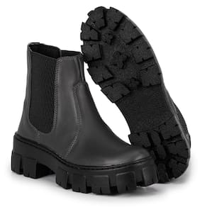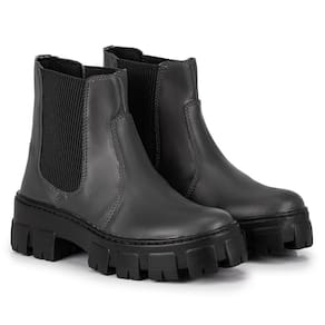 Bota Feminina Coturno 601 Tratorado Cano Medio Elastico - Preto
