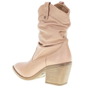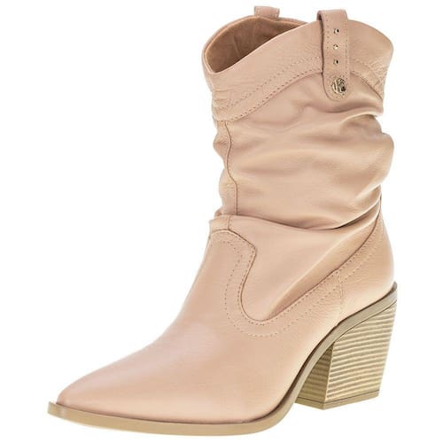 A Bota Feminina Country Cano Baixo Bottero é confeccionada em Couro Burnish com acabamento em costura, forro interno em têxtil, palmilha em PU e solado em borracha com salto de sete centímetros e meio. O cano mede dezesseis centímetros de altura por trinta e sete centímetros de circunferência.