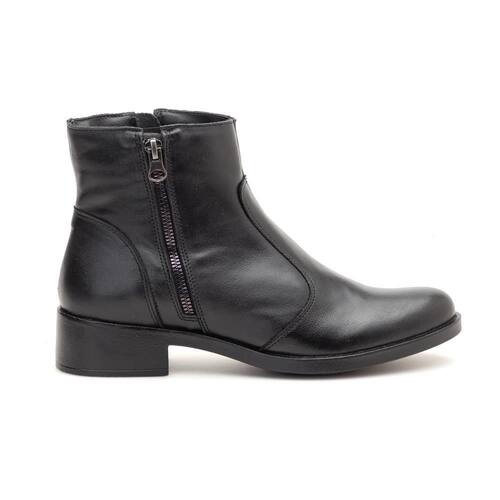 Bota Feminina Couro Cano Curto Bico Redondo Casual Dia a Dia - 37 - Preto