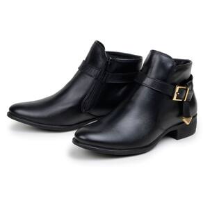 Bota Feminina Couro Cano Curto Bota Coturno Casual Fivela Lateral Bota Dia a Dia - 36 - Preto
