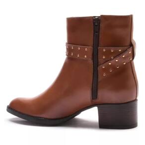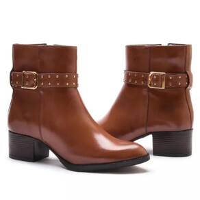 Bota Feminina Couro Cano Curto Salto Baixo Conforto - 40 - Marrom
