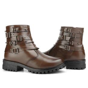 Bota Feminina Couro Cano Médio Tratorada Detalhe Fivela - 37 - Marrom