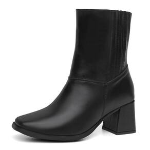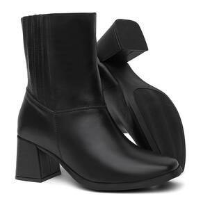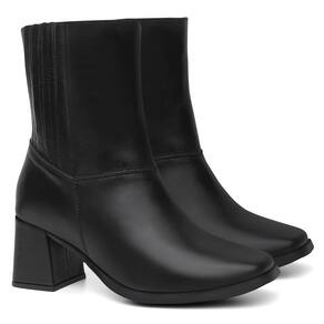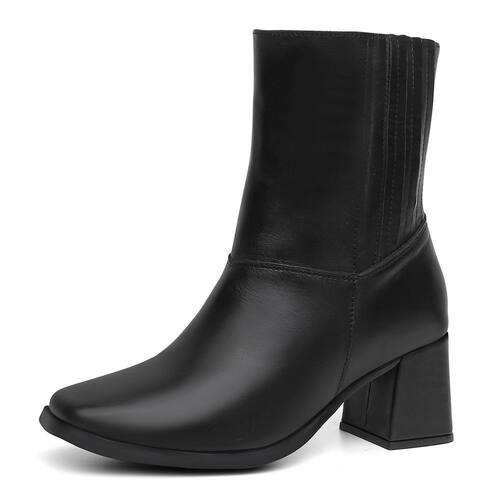 Bota Feminina Couro Cano Médio Zíper Lateral Salto Grosso - 39 - Preto