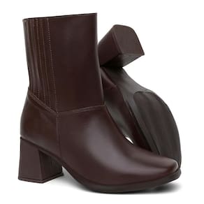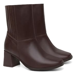 Bota Feminina Couro Cano Médio Zíper Lateral Salto Grosso - 34 - Marrom Cacau