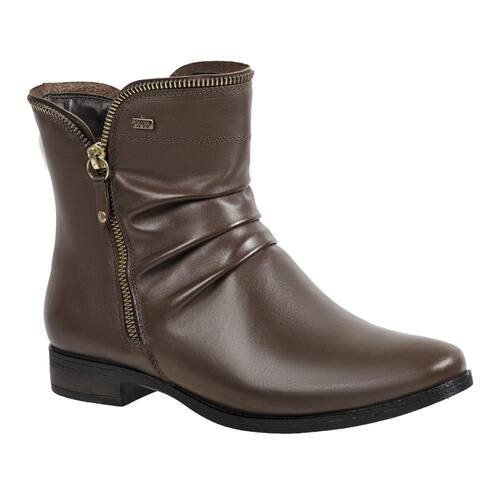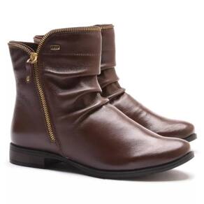 Bota Feminina Couro Casual Cano Curto Zíper Vegetale - 34 - Marrom