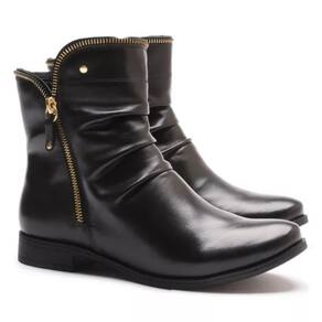 Bota Feminina Couro Casual Cano Curto Zíper Vegetale - 40 - Preto
