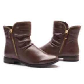 Bota Feminina Couro Casual Cano Curto Zíper Vegetale - 38 - Marrom