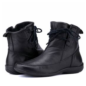 Bota Feminina Em Couro Preta Cano Curto Com Cadarços Fashion - 35 - Preto