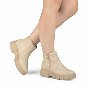 bota feminina kolosh coturno bege com ziper lateral - 38 - Bege