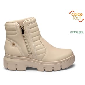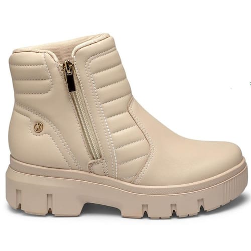Bota Feminina Kolosh Tratorada Zíper Calce Fácil Conforto - Bege - 37