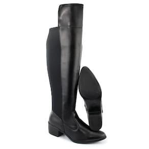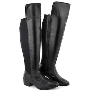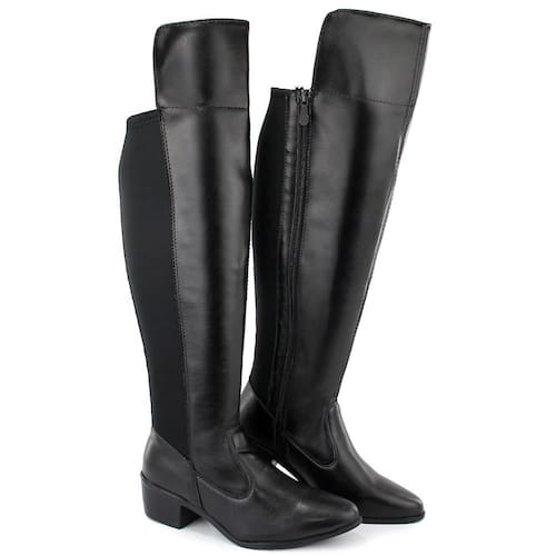 Bota Feminina Montaria Casual Cano Alto Elástico Conforto - 36 - Preto