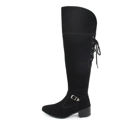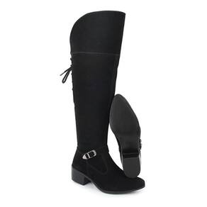 Bota Feminina Montaria Casual De Camurça Inverno Country - 37 - Preto