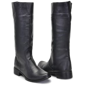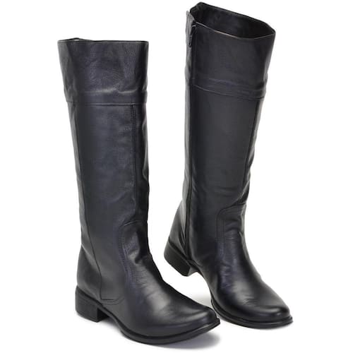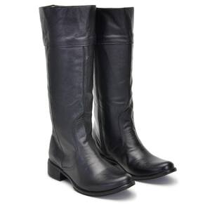 Bota Feminina Montaria Couro Cano Alto Zíper Confortável - 34 - Preto