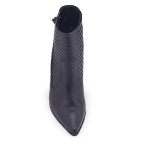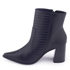 A Bota 24-68103 é um modelo clássico tem cabedal fabricado em material sintético liso com detalhe em costuras. É um modelo confortável, apresenta um bico fino e fechamento por zíper na lateral interna. Toda forrada internamente, sua palmilha é fixa, macia e revestida em material têxtil apresentando a logo da marca. O salto bloco com cantos arredondados, possui aproximadamente 12,5cm de altura com acabamento fachetado, é confortável e traz segurança ao caminhar. Seu solado possui frisos para maior segurança.