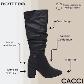 A Bota Bottero traduz o equilíbrio perfeito entre estilo e conforto, ideal para mulheres que buscam um calçado versátil para o dia a dia. Com salto médio que oferece a altura ideal para quem quer elegância sem abrir mão da estabilidade, essa bota é uma excelente opção para compor produções modernas com praticidade.