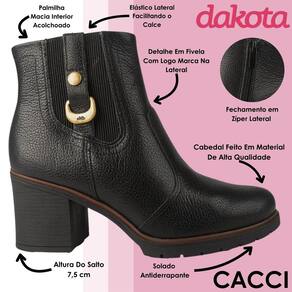 Feita para mulheres que não abrem mão da elegância, a Bota Dakota de Cano Curto em Couro une sofisticação, qualidade e conforto em um só modelo. Com design atemporal e detalhes metalizados que elevam o visual, ela é perfeita para compor produções que vão do casual ao mais arrumado com muita facilidade. Leve, com 0,948 kg, e estruturada para proporcionar conforto, essa bota é ideal para a rotina agitada de quem precisa de estilo e praticidade todos os dias.