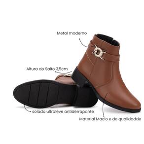 Bota Feminina Salto Confortável Cano Curto Couro - 34 - Marrom Cacau