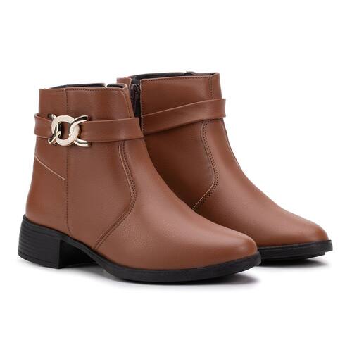Bota Feminina Salto Confortável Cano Curto Couro - 36 - Marrom Cacau